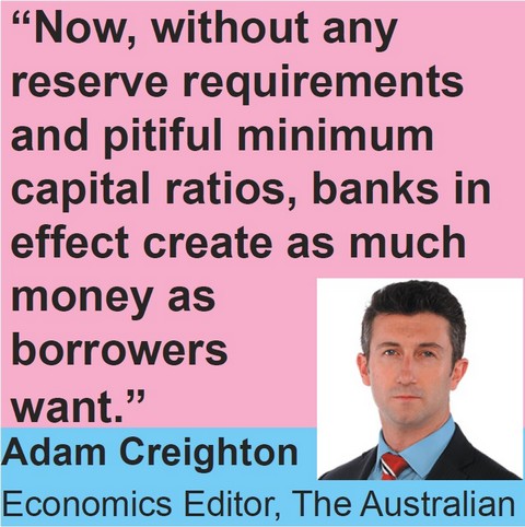 This has been confirmed by leading figures in the banking industry like Mervyn King, former governor of the Bank of England, and Graham Towers , former governor of the Bank of Canada, as well as local commentators like Bernard Hickey, Bryan Gaynor, Raf Manji, Shamubeel Equab, and Bryan Gould .