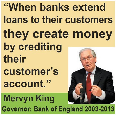 This has been confirmed by leading figures in the banking industry like Mervyn King, former governor of the Bank of England, and Graham Towers , former governor of the Bank of Canada, as well as local commentators like Bernard Hickey, Bryan Gaynor, Raf Manji, Shamubeel Equab, and Bryan Gould .
